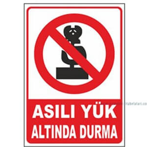 A ŞIKKI: KALDIRILAN YÜKÜN ALTINDA DURMA B ŞIKKI: ASILI YÜK ALTINDA DURMAK YASAKTIR. C ŞIKKI: KALDIRILAN YÜKÜN ALTINDA DURMAK YASAKTIR. D ŞIKKI: ASILI YÜK ALTINDA DURMA